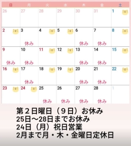2025年2月営業日のお知らせ 2025.02.01 お店からのお知らせ 2月の定期日です。2月も不定休が多いです。 大雪等で臨時ご休業もあります。 お越しの際には、Instagramやお電話にてご確認後、 ご来店 続きを読む
